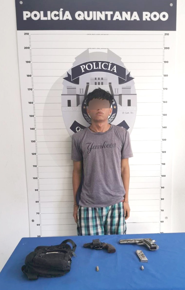 La detención se realizó cuando elementos de la Policía Preventiva realizaban un recorrido de prevención y vigilancia por la Supermanzana 258, manzana 88, lote 1, cuando de pronto escucharon al menos cuatro detonaciones de arma de fuego, por lo que procedieron a efectuar un operativo de búsqueda y localización por la zona.