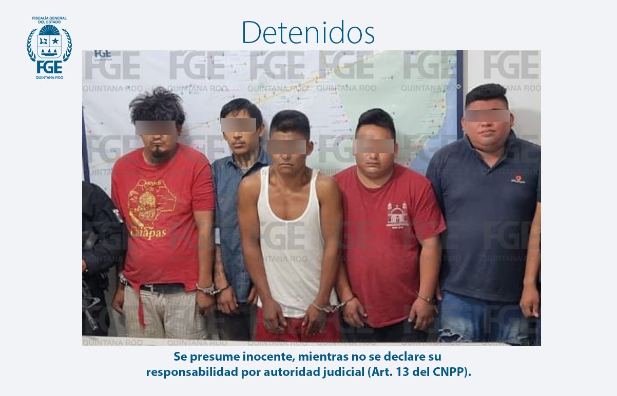 Tulum, Quintana Roo. La Fiscalía General del Estado, que encabeza Óscar Montes de Oca, informa que, en colaboración con el Grupo de Coordinación para la Construcción de Paz y Seguridad de Quintana Roo, se detuvo a cinco personas por su probable participación en delitos contra la salud, portación de armas y robo de vehículo.