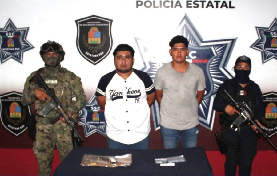 CANCÚN.- En posesión de diversas dosis de presunta droga y un arma de fuego, fueron detenidos Guadalupe “N” y Henry “N”, esto mientras se encontraban sobre la avenida 20 de noviembre, entre la calle 37 y 41, de la Supermanzana 77.