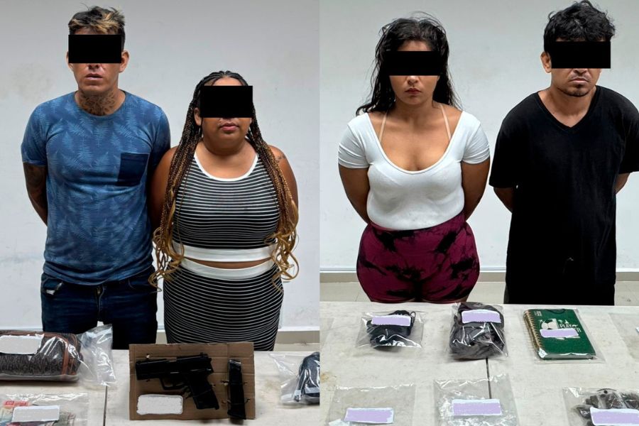 En una primera intervención realizada en la región 259 del municipio de Benito Juárez, se detuvo a dos personas identificadas como Josué “N” y Nohemí Kaori “N”, quienes presuntamente portaban un arma de fuego y varios envoltorios con posibles dosis de marihuana, metanfetamina y cocaína.