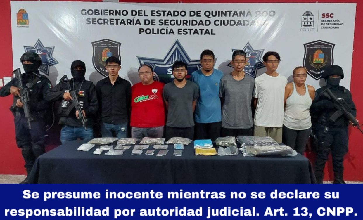 Cancún.- Durante un recorrido de vigilancia en el fraccionamiento Galaxia del Sol, de la Supermanzana 253, fueron detenidos hoy siete presuntos narcomenudistas.