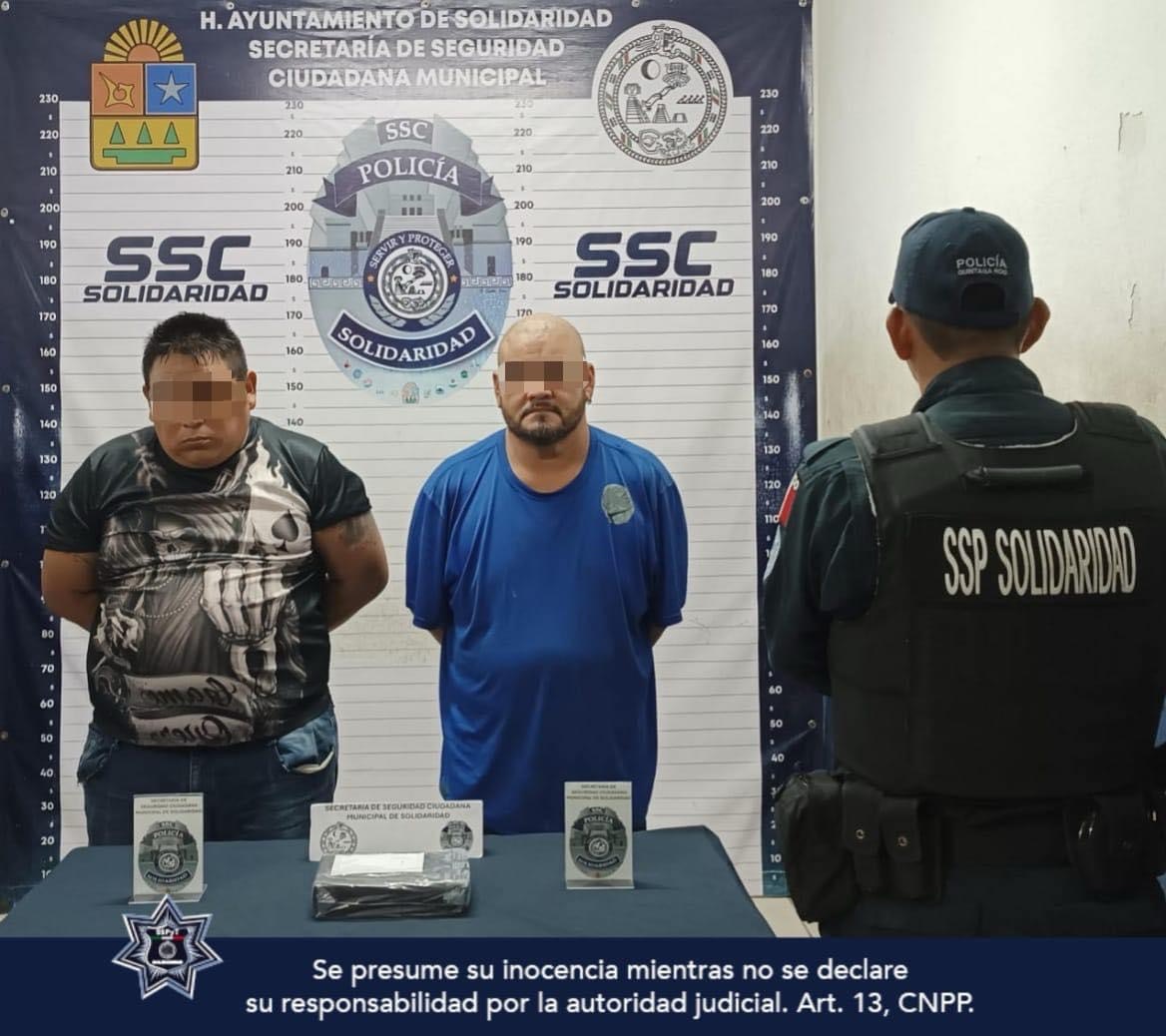 Playa del Carmen.- En atención a una denuncia ciudadana, la Policía Municipal aseguró a 2 personas y un paquete con posible cocaína.