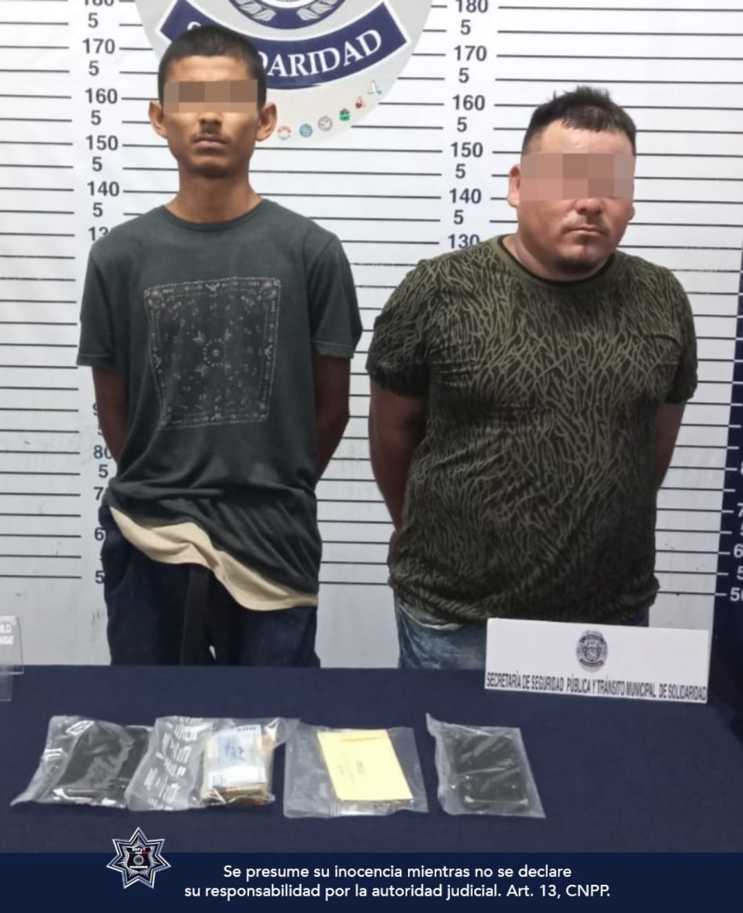Una rápida intervención y el aumento de vigilancia en zonas comerciales, permitió que policías de la Secretaría de Seguridad Pública y Tránsito Municipal de Solidaridad aseguraran a dos sujetos por la posible comisión del delito de extorsión, cuando presuntamente le solicitaban dinero a un hombre en un centro comercial ubicado sobre la avenida CTM.