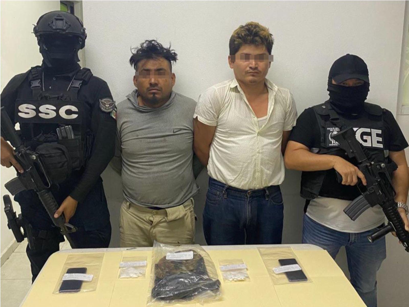 TULUM.- Durante un operativo de vigilancia dos hombres fueron detenidos mientras intercambiaban bolsas con posible droga, esto en la calle Consejo Ciudadano de la colonia irregular Dos de Octubre.