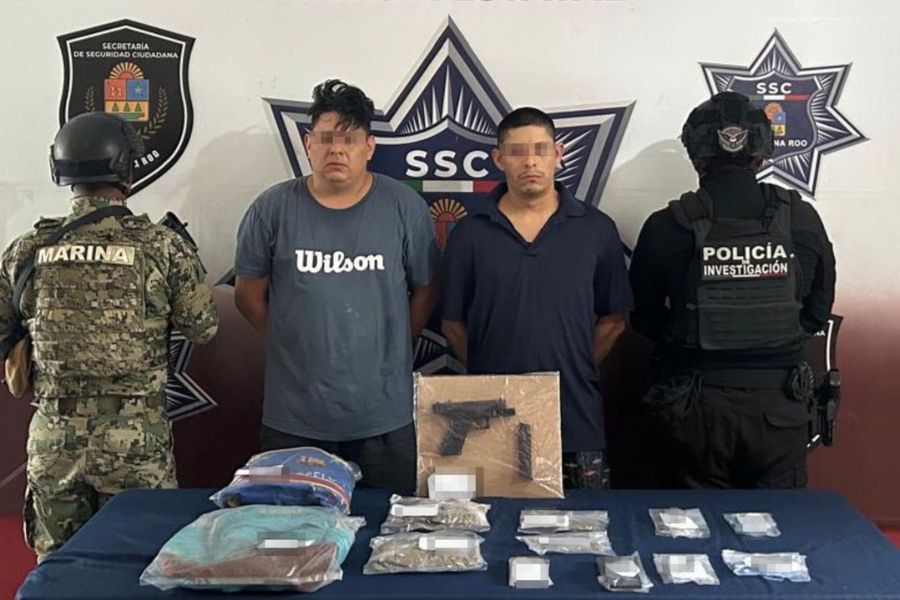 Cancún.- Dos hombres fueron detenidos durante un operativo conjunto entre la Secretaría de Seguridad Ciudadana del Estado y uniformados federales de la Secretaría de Marina, tras ser sorprendidos en una presunta transacción de sustancias ilícitas en la supermanzana 91 en el municipio de Benito Juárez.