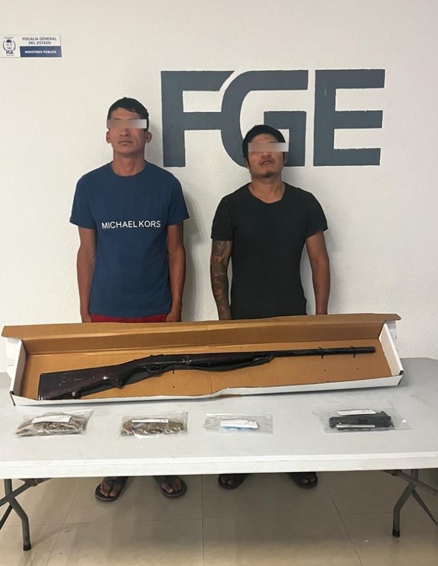 Durante labores de investigación por parte de elementos de la Fiscalía Especializada en Combate al Delito de Narcomenudeo en la colonia irregular Los Pájaros, lograron la detención de Daniel “N” y Enrique “N”, a quienes les fueron asegurados bolsas de hierba seca de color verde, con características similares a la marihuana, y un arma de fuego.