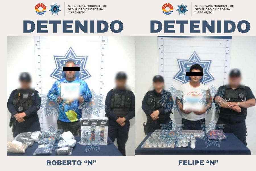 Cancún.- En una jornada marcada por la reincidencia del delito, elementos de la Secretaría Municipal de Seguridad Ciudadana y Tránsito (SMSCyT) lograron detener a dos hombres por su presunta participación en robos separados cometidos en un mismo supermercado ubicado en la céntrica Supermanzana 7 de Cancún.