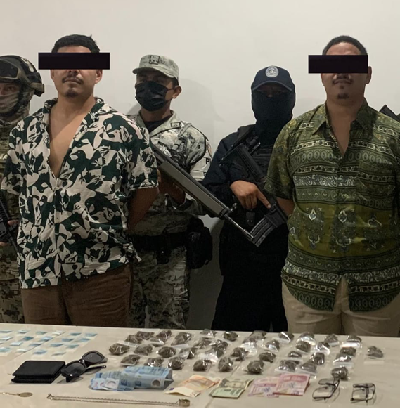 Dos sujetos fueron detenidos tras un operativo entre las fuerzas de seguridad de los tres niveles de Gobierno, la noche de ayer en la Zona hotelera de Tulum.