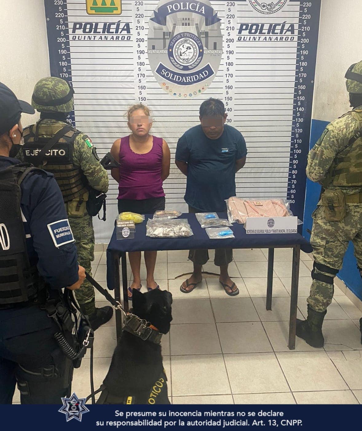 Como resultado del reforzamiento de la seguridad y vigilancia, policías de la Secretaría de Seguridad Pública y Tránsito Municipal de Solidaridad y la SEDENA, aseguraron a dos personas en posesión de 96 bolsitas con posibles narcóticos en la colonia Colosio.