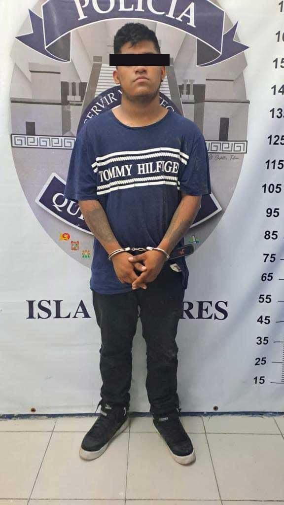 Tras una fuerte persecución, se logró la detención de los dos sujetos que responden a los nombres de M. T. J. P., de 19 años de edad, originario de Isla Mujeres y E. B. D., de 19 años de edad, originario de Veracruz, quienes al momento de la detención tenían en su poder un arma de fuego y droga.