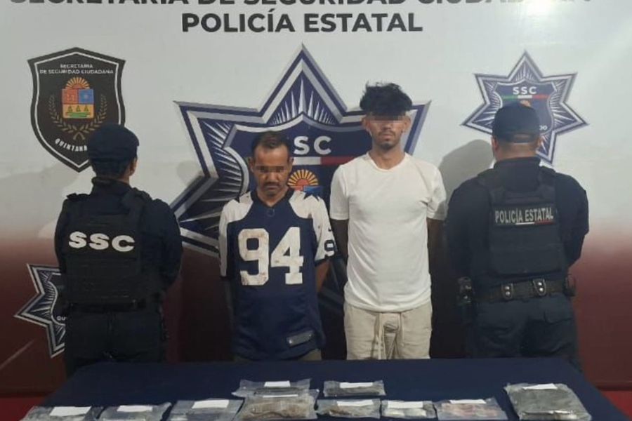 CANCÚN, Q.Roo, 16 de mayo de 2025.- Dos hombres fueron detenidos por su presunta participación en delitos contra la salud y encubrimiento, en un operativo sorpresa de la Secretaría de Seguridad Ciudadana del Estado en el fraccionamiento Los Ángeles.