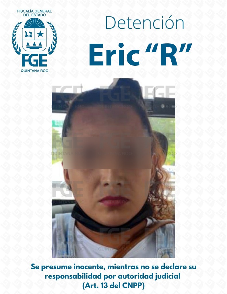 Solidaridad.- La Fiscalía General del Estado de Quintana Roo informa que elementos de la Policía de Investigación cumplimentaron una orden de aprehensión en contra de Eric “R” por su probable participación en el delito de secuestro, en agravio de una víctima de identidad reservada en Solidaridad.