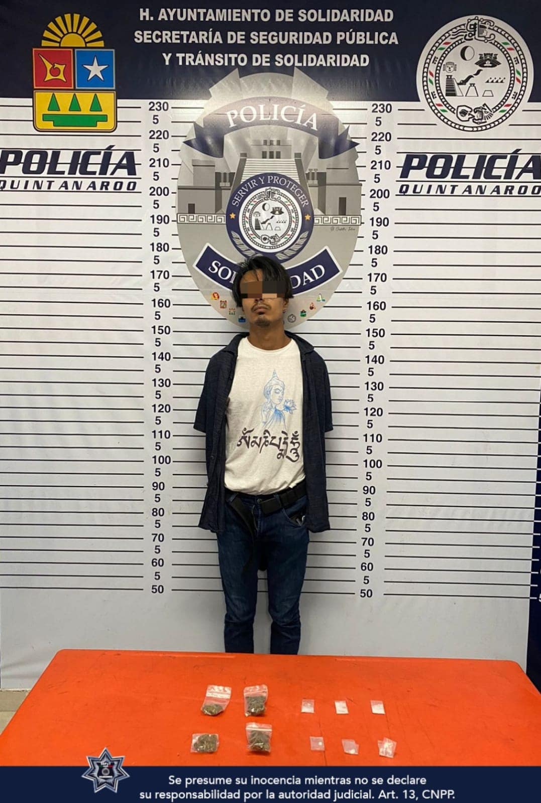 PLAYA DEL CARMEN.- Una persona fue asegurada por policías de la Secretaría de Seguridad Pública y Tránsito Municipal de Solidaridad en posesión de posibles narcóticos como marihuana, cristal y piedra.