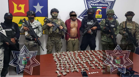 TULUM.- Elementos de la Policía de Tulum aseguraron a un masculino en la zona de invasión “2 de Octubre”, el cual tenía bajo su posesión 155 dosis de droga.