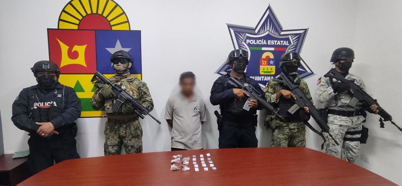 TULUM.-Otro presunto narcomenudista, ahora de Felipe Carrillo Puerto fue detenido esta tarde en Tulum durante un operativo enfocado a prevenir delitos de alto impacto.