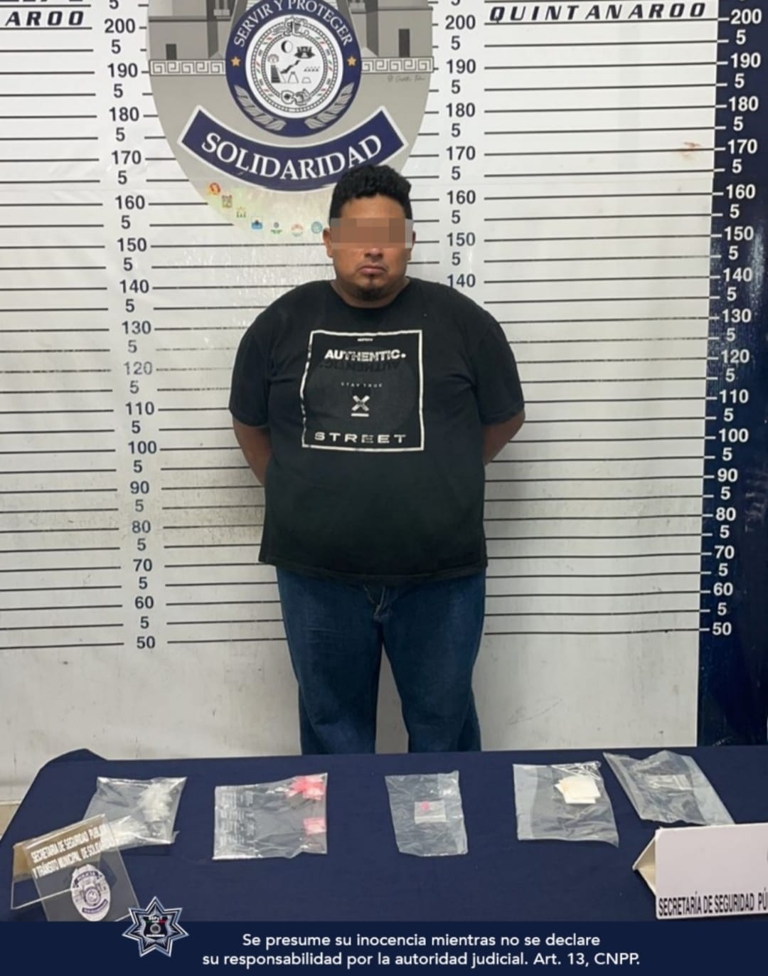 Playa del Carmen .- En atención a una denuncia por venta de drogas, policías de la Secretaría de Seguridad Pública y Tránsito Municipal de Solidaridad, aseguraron a un sujeto en posesión de 38 bolsitas con posibles narcóticos, en el fraccionamiento Real Bilbao.