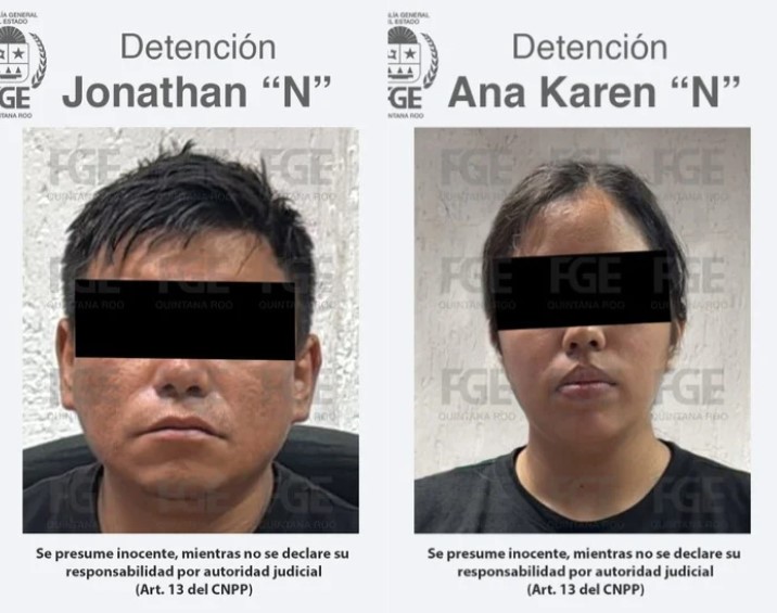 Benito Juárez.- La Fiscalía General el Estado informa la detención de dos personas, uno del sexo masculino, identificado como Johathan “N” y una femenina identificada como Ana Karen “N”, por su probable participación en hechos posiblemente constitutivos del delito de robo a establecimiento en este municipio.