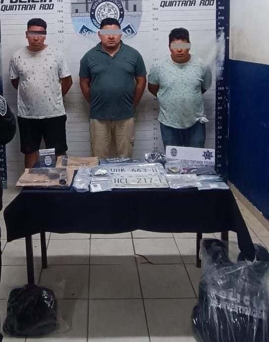 Detenido quedó Oscar Fernando “N”, de 36 años, originario de Chetumal, quien estaba asignado a la Policía de Investigación de Cancún, al igual que Roberto “N” de 32 años, de Tabasco y Esbin “N” de 35 años, de Chiapas.