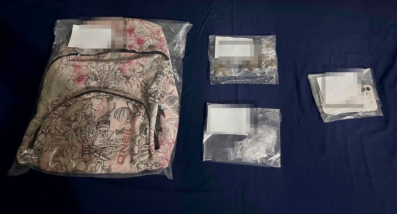 César Miguel “N”, se le decomisaron: una mochila, 17 bolsitas de plástico transparente con hierba seca con las características similares a la marihuana, 30 bolsitas tipo ziploc con fragmentos cristianos con características similares al cristal, un teléfono celular y una motocicleta de la marca Italika tipo DM 300.