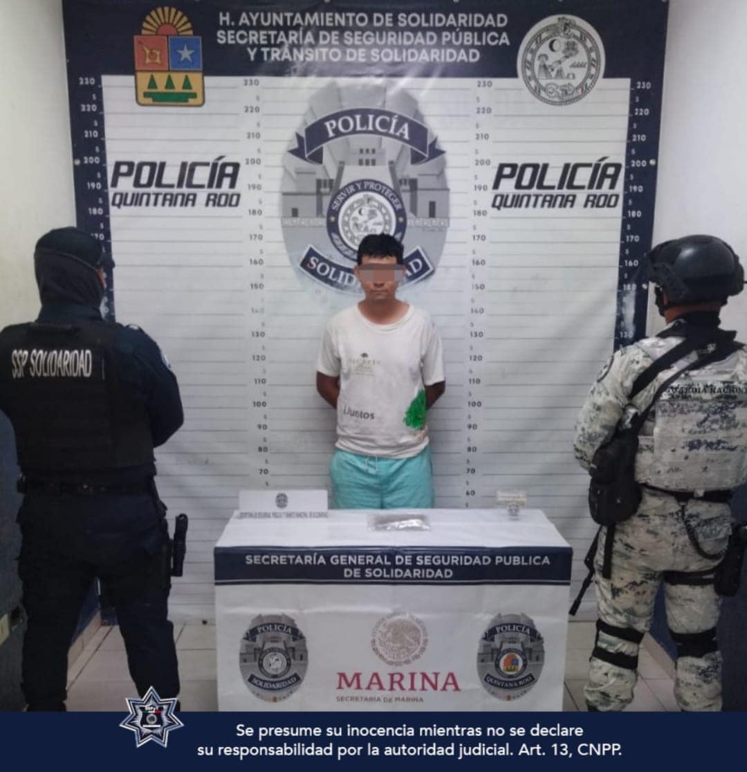 Como parte de la estrategia para combatir la delincuencia y los operativos de prevención contra el narcomenudeo, en acciones distintas elementos de la Secretaría de Seguridad Pública y Tránsito Municipal de Solidaridad aseguraron a un sujeto en posesión de posible marihuana, así como 4 cajas y un sobre con posibles narcóticos, en una empresa de paquetería.