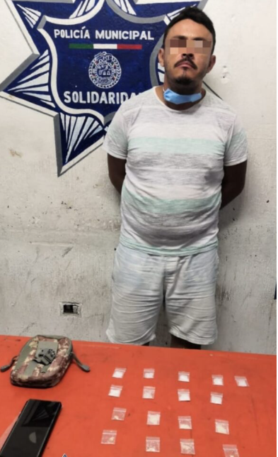 Playa del Carmen.- Policías de Solidaridad aseguraron a un sujeto la noche de ayer con varias dosis de droga en Playa del Carmen en el Fraccionamiento Galaxia 2.