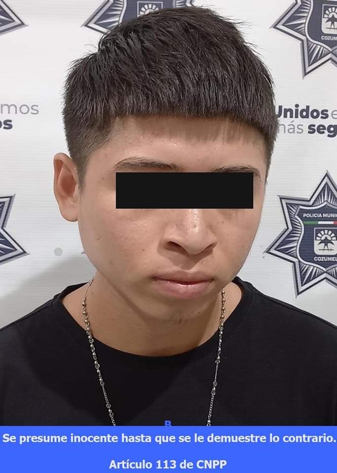 Cozumel.- Elementos de la Policía Municipal detienen a un sujeto que conducía su motocicleta zigzagueando y al inspeccionarlo le encuentran 13 bolsitas de al parecer cocaína y crack.