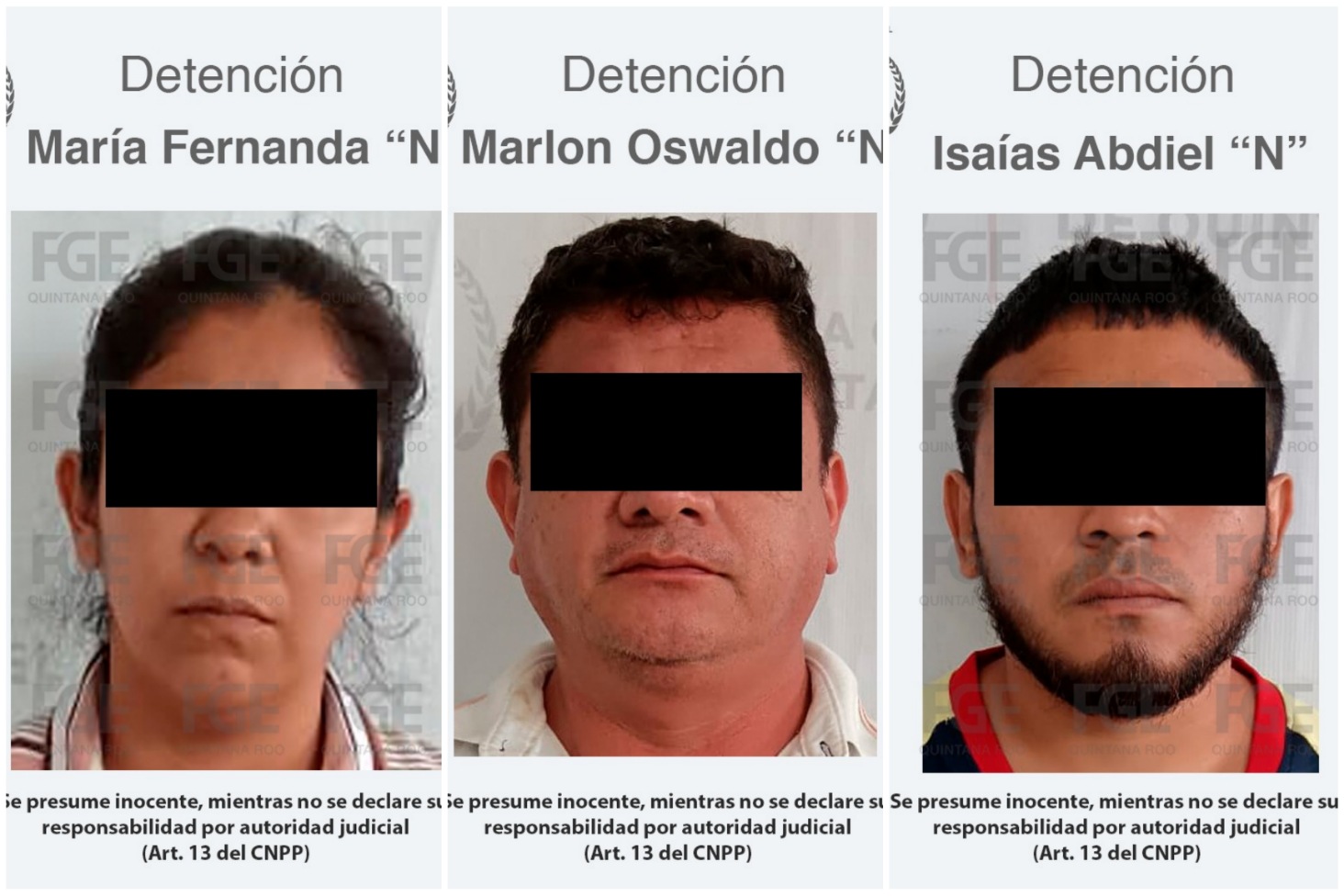 • La Fiscalía General del Estado informa que los detenidos son Marlon Oswaldo “N”, Isaías Abdiel “N” y María Fernanda “N”