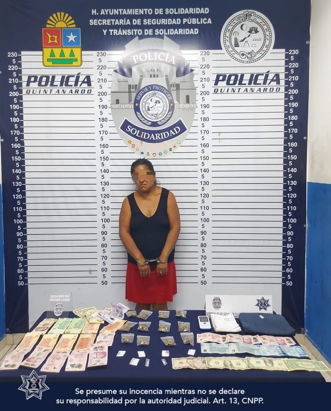 PLAYA DEL CARMEN.- Una mujer fue asegurada en posesión de 19 bolsitas con posibles narcóticos por policías de la Secretaría de Seguridad Pública y Tránsito Municipal de Solidaridad, en la colonia Colosio.