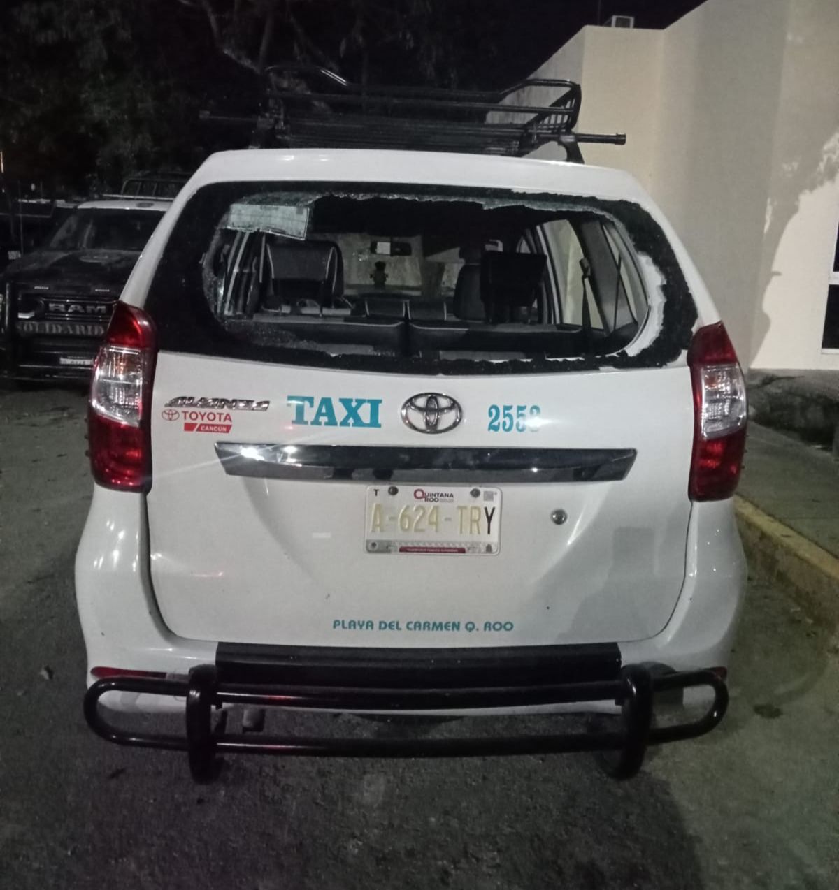 Tras recibir el reporte de posibles detonaciones la Policía Preventiva se trasladó al lugar donde observaron que un vehículo marca Toyota, tipo Avanza, habilitado para el servicio de taxi tenía el medallón roto, sin embargo aceleró su marcha y tras darle alcance descendieron quienes se identificaron como Alejandro “N” de 39 años, originario de Tabasco y Carlos “N” de 38 años, procedente de Guatemala.
