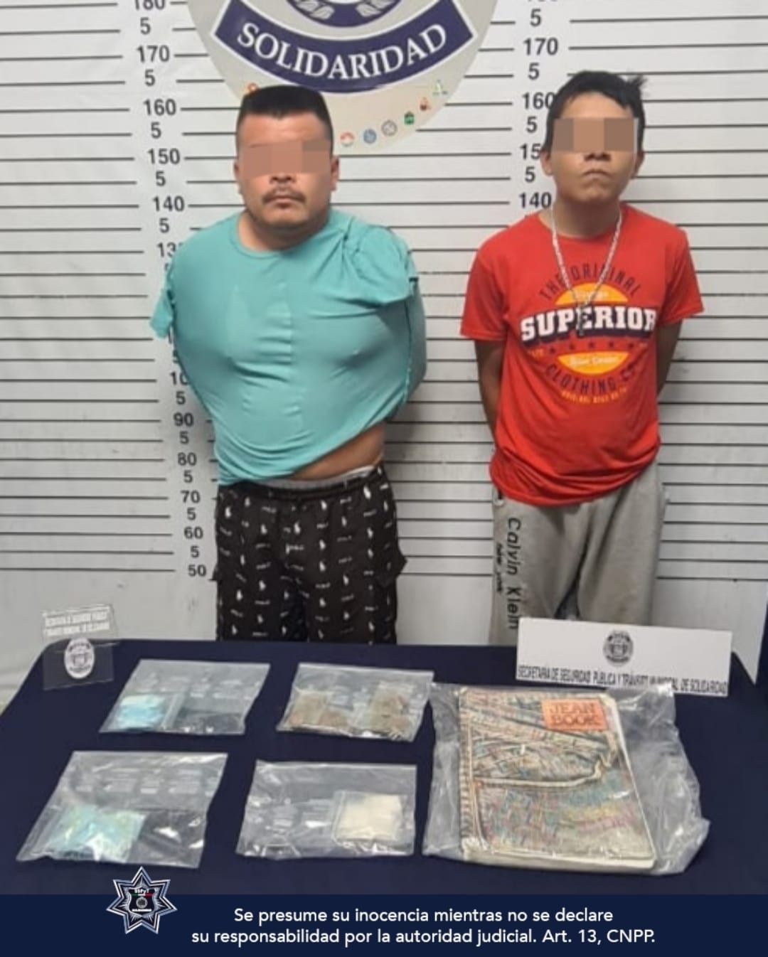 Los hechos ocurrieron la madrugada del 24 de julio, mientras los oficiales circulaban sobre la avenida Loros con calle cerrada Pelícano Blanco, y sorprendieron a los ahora detenidos Antonio “N” de 27 años de edad, originario de Tabasco y Alejandro “N” de 22 años de edad, originario de Quintana Roo, manipulando unas bolsitas con lo que parecían ser posibles narcóticos, a lo que les marcaron el alto.