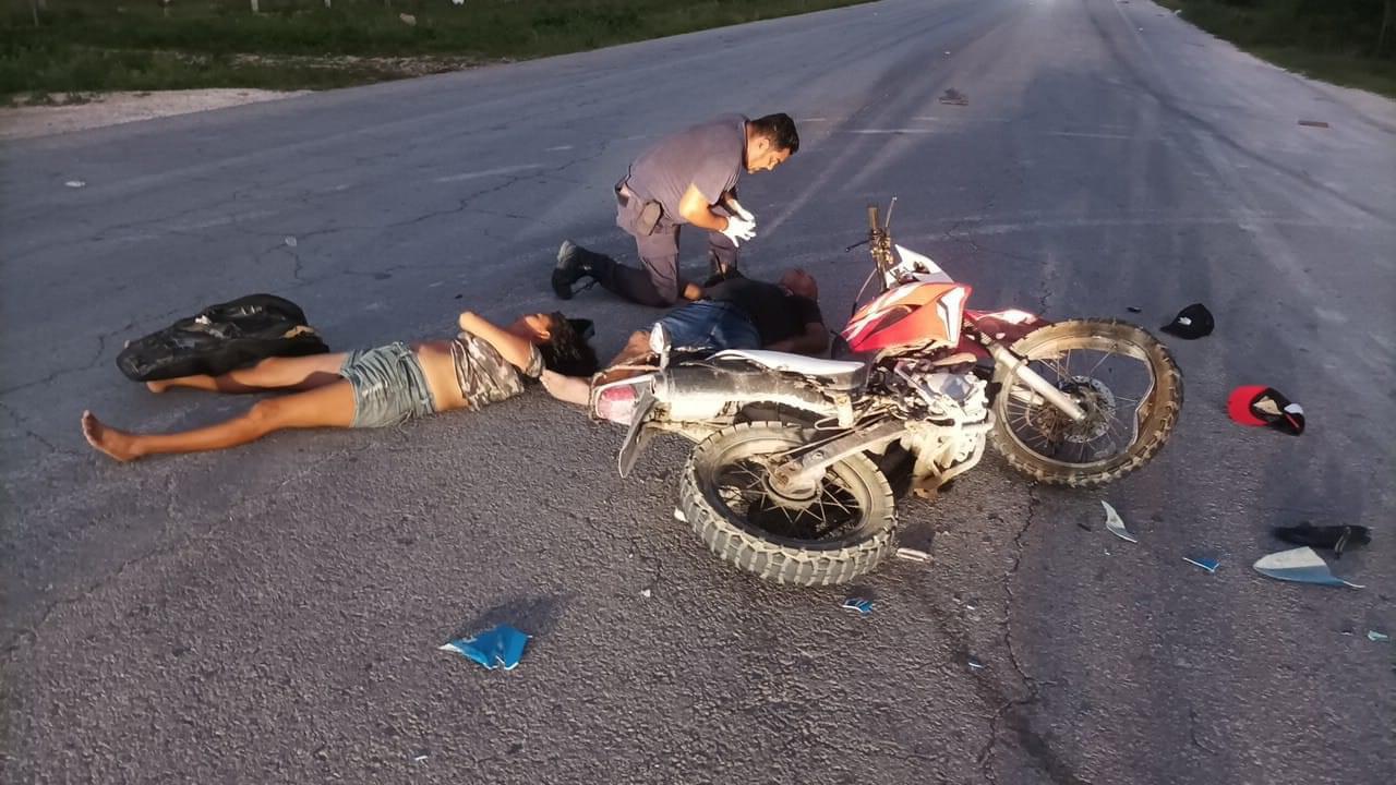 Mahahual.- Dos muertos y una mujer herida fue el saldo que dejó esta noche un ‘encontronazo’ entre dos motocicletas que ocurrió en la comunidad de Mahahual.