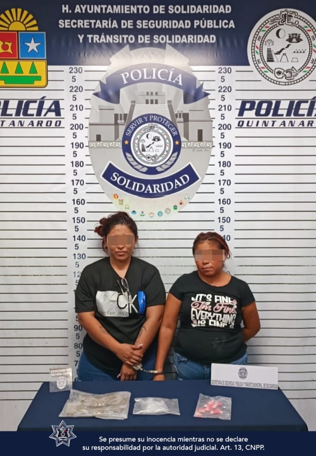 Flor “N” de 37 años de edad y Roxana “N” de 23 años, ambas originarias de Quintana Roo, fueron aseguradas la noche del 10 de septiembre, en posesión de 14 bolsitas con un vegetal con las características de la marihuana y 14 bolsitas con una sustancia similar a la droga conocida como piedra, luego de ser sorprendidas intercambiando bolsitas con posible marihuana.