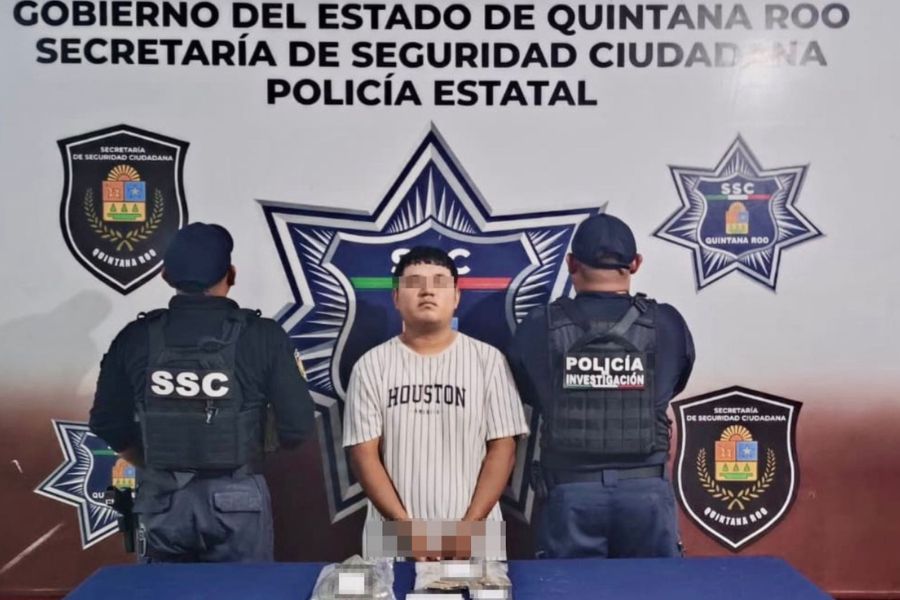 Cancún.- Durante un operativo de vigilancia en el fraccionamiento Galaxias del Sol, en Cancún, elementos de la Secretaría de Seguridad Ciudadana de Quintana Roo detuvieron a un hombre por presunto narcomenudeo.