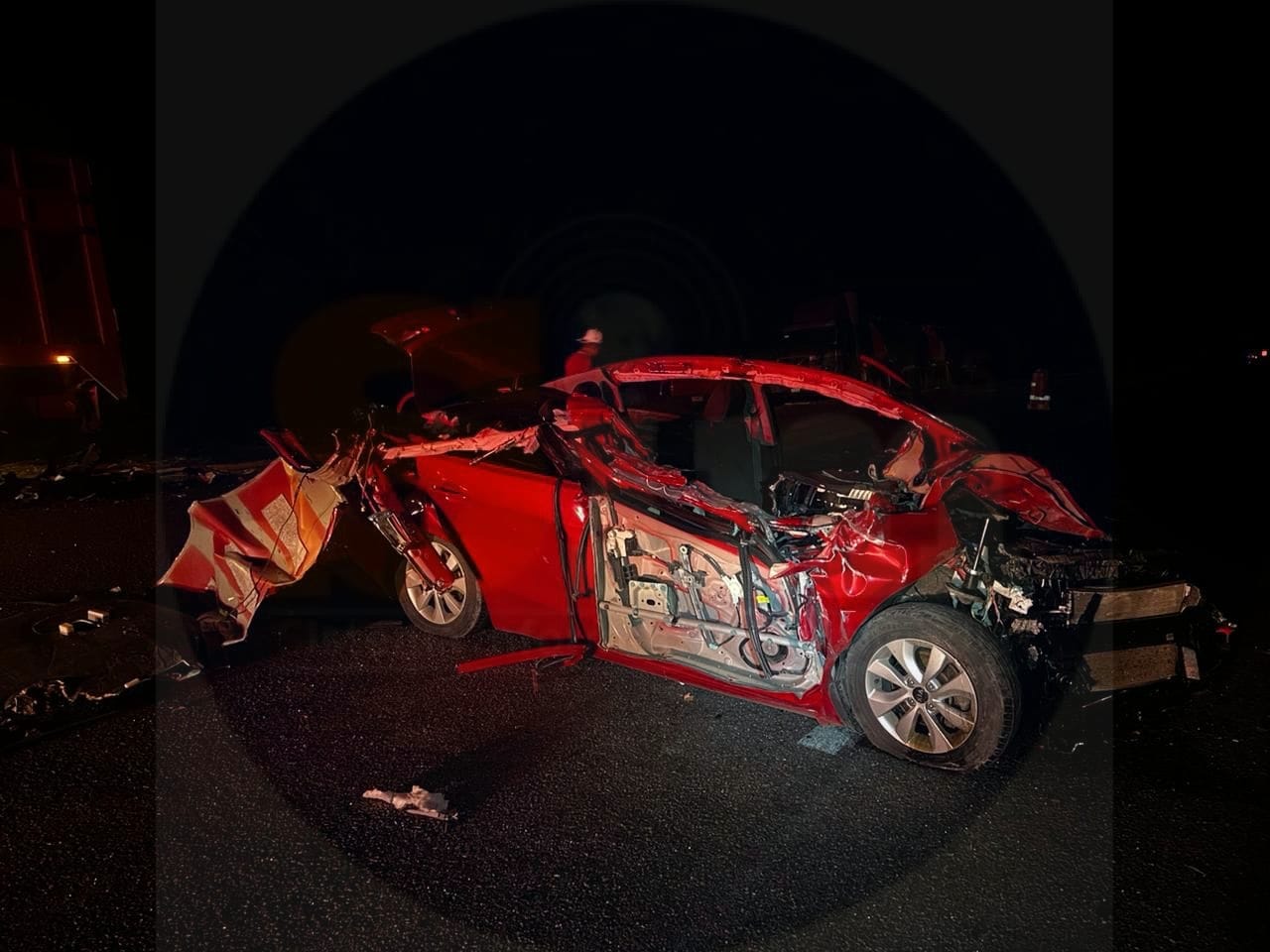 Los hechos se registraron en la madrugada de este sábado luego de que el conductor de un automóvil dormitara perdiendo el control de la unidad y se impactara contra un tractocamión que se encontraba estacionado en una zona de descanso.