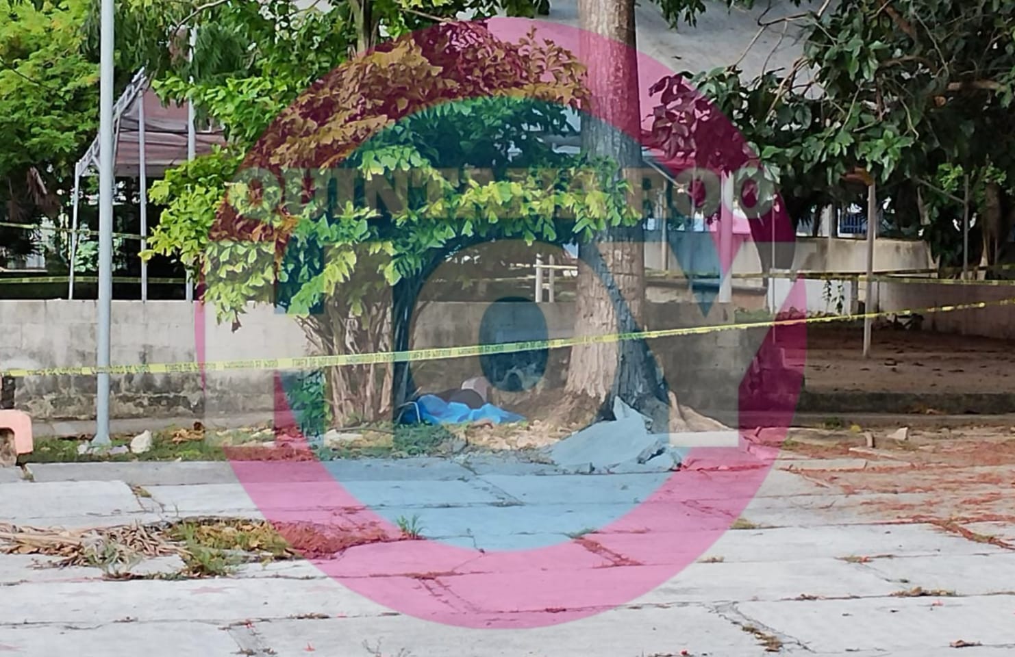 Elementos de seguridad pública y de servicios periciales acudieron al parque ubicado a espaldas de la iglesia católica La Sagrada Familia en Cancún para el acordonamiento de área y realizar el levantamiento del cuerpo.