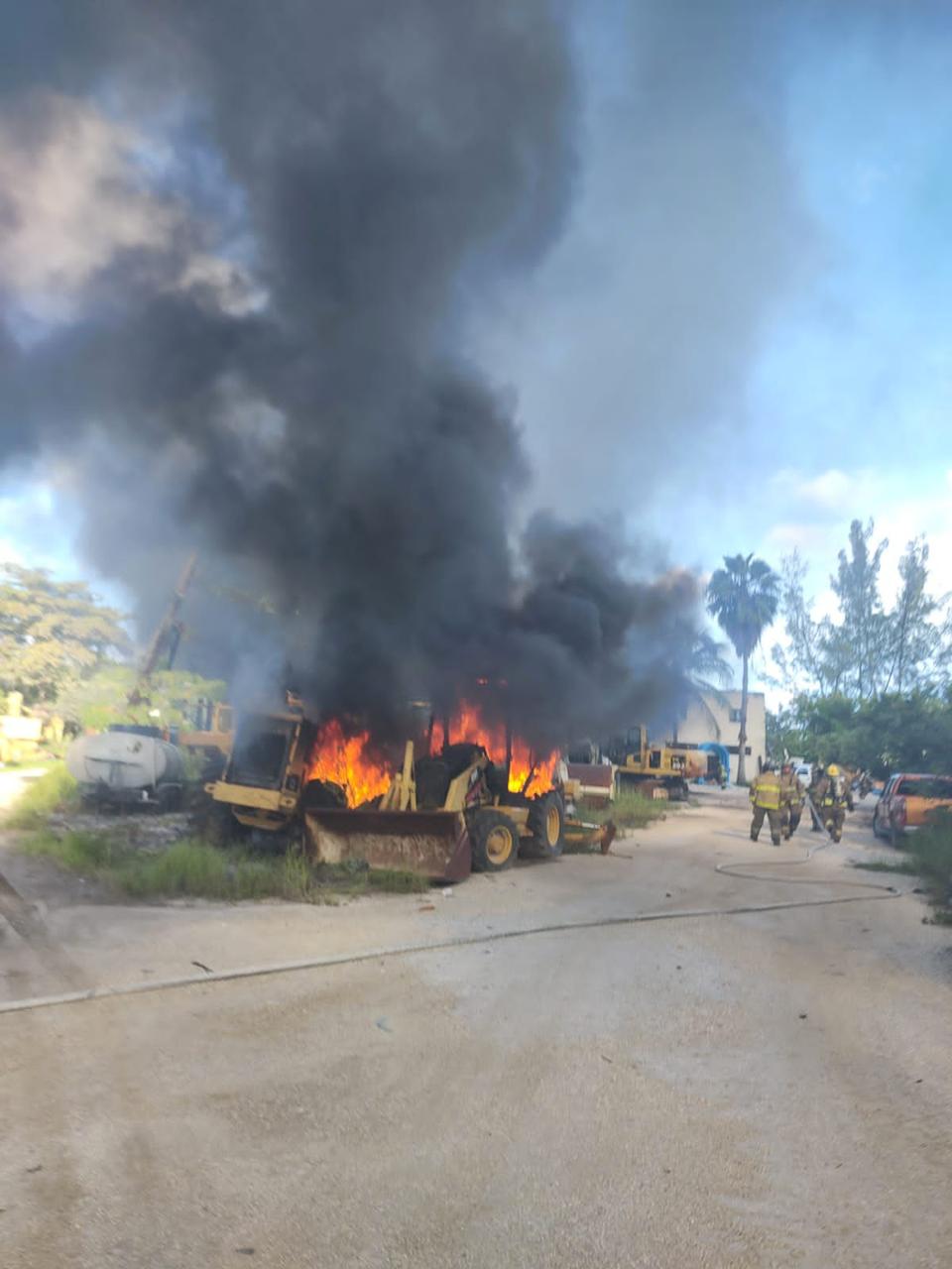 Además de la grave lesión del trabajador, el incidente también causó daños materiales considerables. Siete unidades tipo retroexcavadoras resultaron semiconsumidas por el fuego.