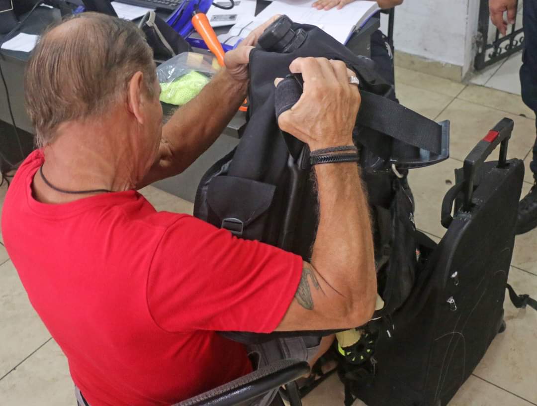 El ciudadano de 63 años dijo que la maleta color negra contenía una mochila negra, un regulador de buceo, un chaleco, una camisa para bucear, un par de aletas, un par de zapatos de buzo, dos visores, una boya, un cuchillo y un detector de metal, confirmando en el momento de la entrega que todo estaba en orden.