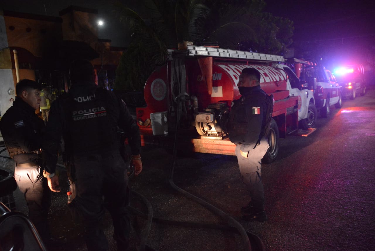 Al lugar del siniestro que devastado casi toda las pertenencias de la familia, llegaron los auxilios de los bomberos de Cancún.