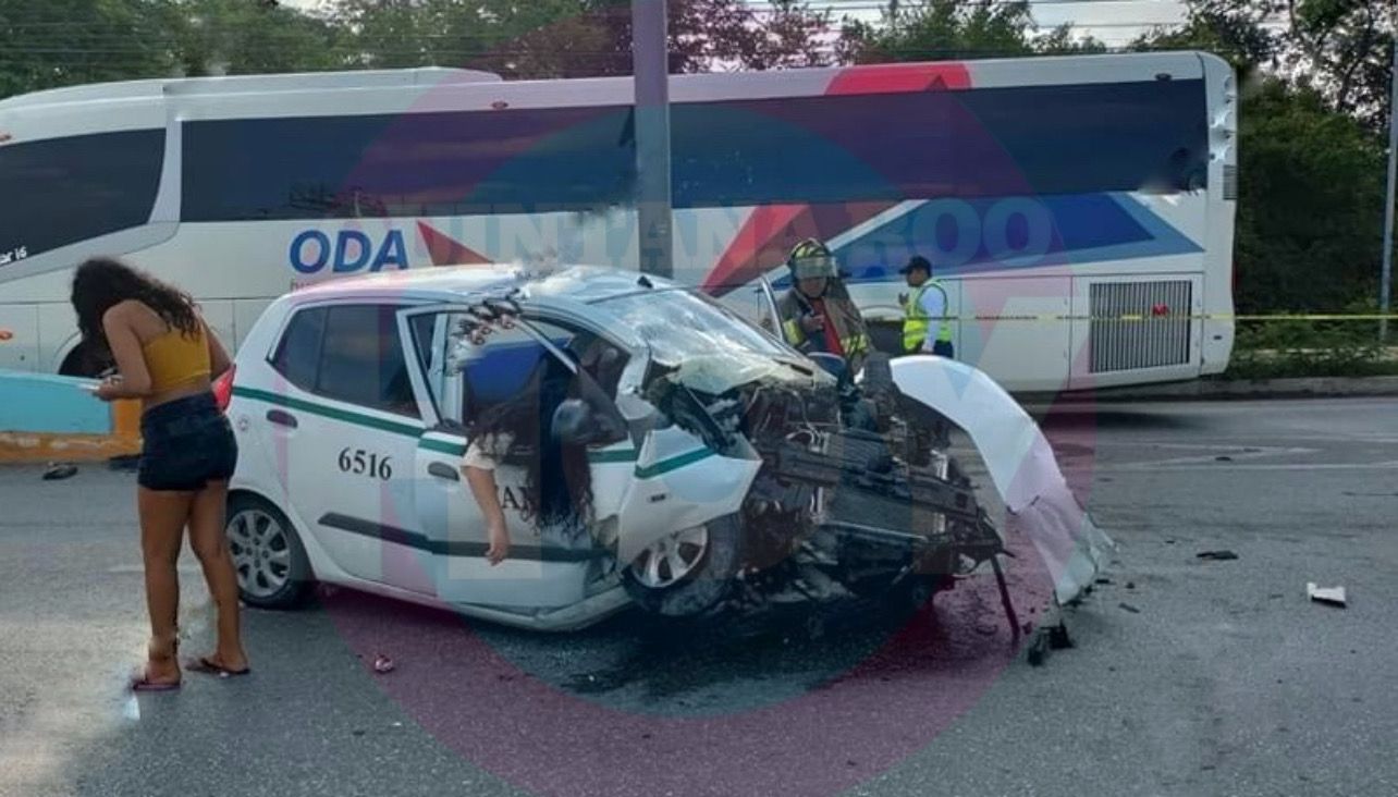 CANCÚN.-Dos personas lesionadas y una mujer sin vida, luego de un fuerte accidente en el Bulevar Luis Donaldo Colosio alrededor de las 8:00 de la mañana, luego de que el conductor de un taxi del Sindicato Andrés Quintana Roo, se impactara contra un poste.