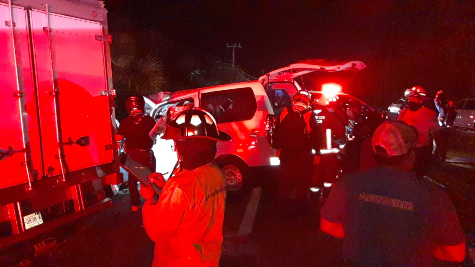 El conductor de una van que transportaba turistas choco de frente contra un camión de caja refrigerada, solo hay lesionados hasta el momento. Se sabe que el operador está entre los heridos y presenta fractura expuesta en ambas piernas, uno de los conductores se encontraba prensado en la unidad, mientras que varios turistas presentaron lesiones.