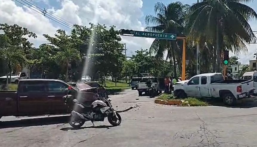 Se registró esta tarde un aparatoso choque entre dos camionetas particulares en la Av Bonampak