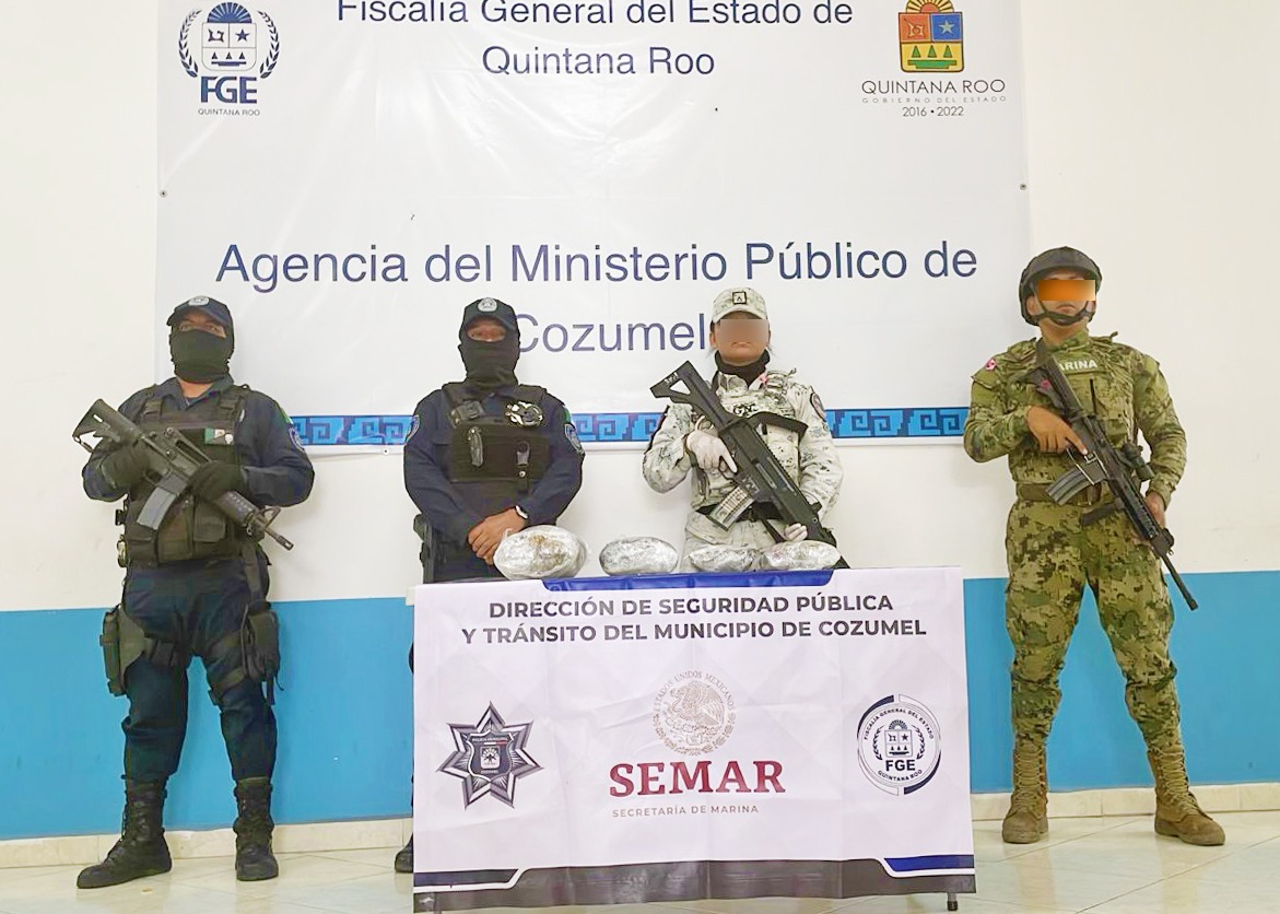 COZUMEL.- Cuatro paquetes de presunto droga fueron encontrados hoy dentro de una caja que fue entregada en una empresa de mensajería, ubicada en la calle Primera Sur, entre la 20 y 25 avenida de la colonia Centro.