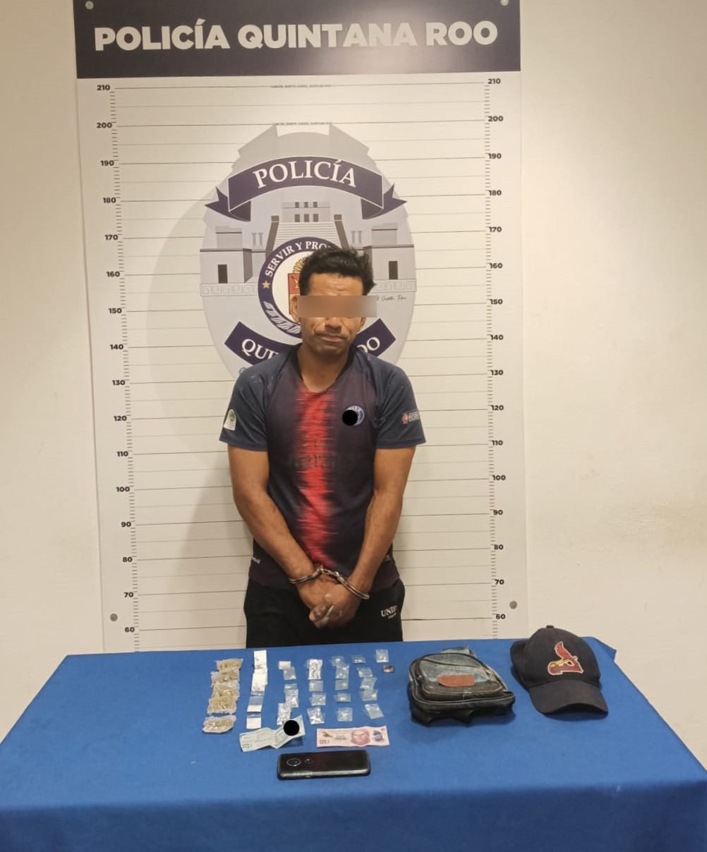 Cancún.- La Policía Quintana Roo Benito Juárez logró la detención de José Alfredo N., de 37 años, originario de Chiapas, por delitos contra la salud.