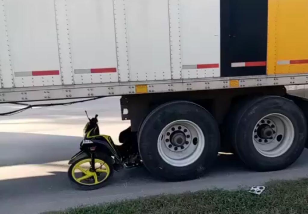 Esto sucedió en a la altura de la Ciudad de La Alegría, el hombre a bordo de un moto quedó prensado en las llantas traseras del tráiler y fue arrastrado varios metros hasta que el conductor del tráiler se percató de lo sucedido.