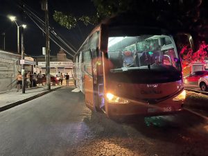 Asimismo, el autobús marca Scania color café y placas 84RA8H S.P.F. quedó bajo el resguardo de tránsito para realizar el peritaje.