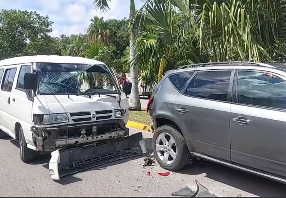 Esta tarde se reportó un choque cerca de la avenida Andrés Quintana Roo, detrás de los juzgados familiares. Una combi de uso privado se estampó contra una camioneta marca Nissan que se encontraba estacionada en la Supermanzana 50, cabe resaltar que estaba en línea amarilla.
