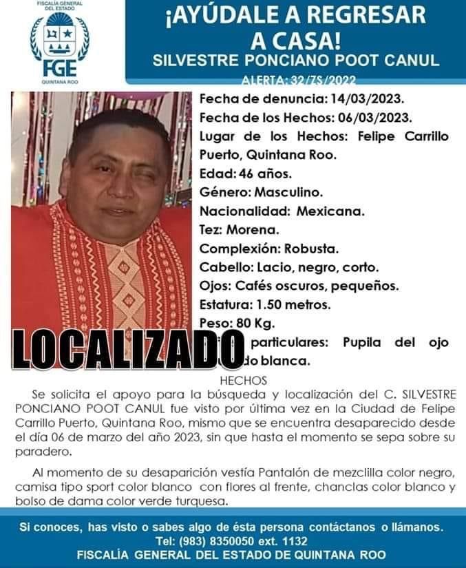 Silvestre Poot Canul, identificado hoy, había desaparecido el pasado 6 de marzo en Felipe Carrillo Puerto. Al parecer, la vestimenta y el ADN fueron usados confirmar que se trataba de uno de los siete restos humanos de la fosa mencionada.