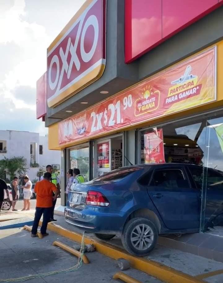 Primeros informes señalan que el conductor intentaba estacionarse, pero en vez de pisar el freno, tocó el acelerador, lo que provocó que se impactara de lleno contra la fachada de cristal de la tienda Oxxo.