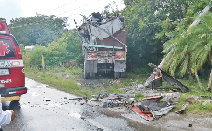 El tráiler terminó fuera de la carretera y se impactó contra un poste eléctrico de alta tensión, por fortuna el incidente no pasó a mayores y el herido sólo presentó lesiones menores.