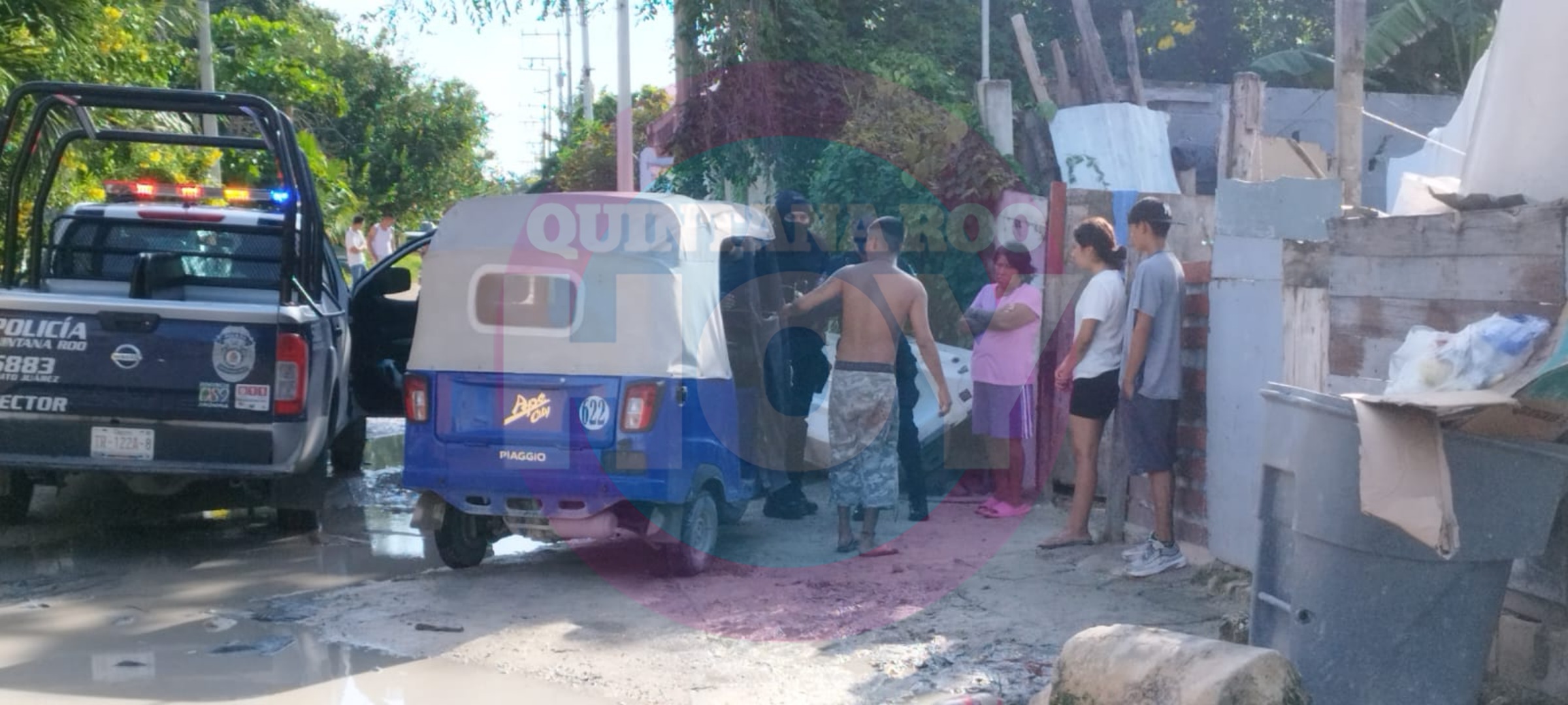 La rápida intervención de sus compañeros permitió que la víctima fuera auxiliada y trasladada en un mototaxi marcado con el número 696 al Hospital General Jesús Kumate Rodríguez, en Cancún.